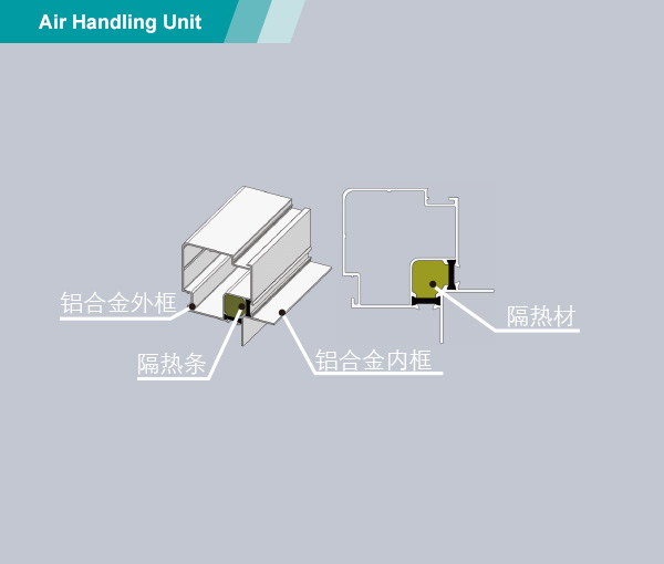bandao新一代MAH组合式空气处理机,艾洛斯(Aiolos)系列,采用防冷桥铝合金框架结构设计,面板与框架为压扣连接方式。